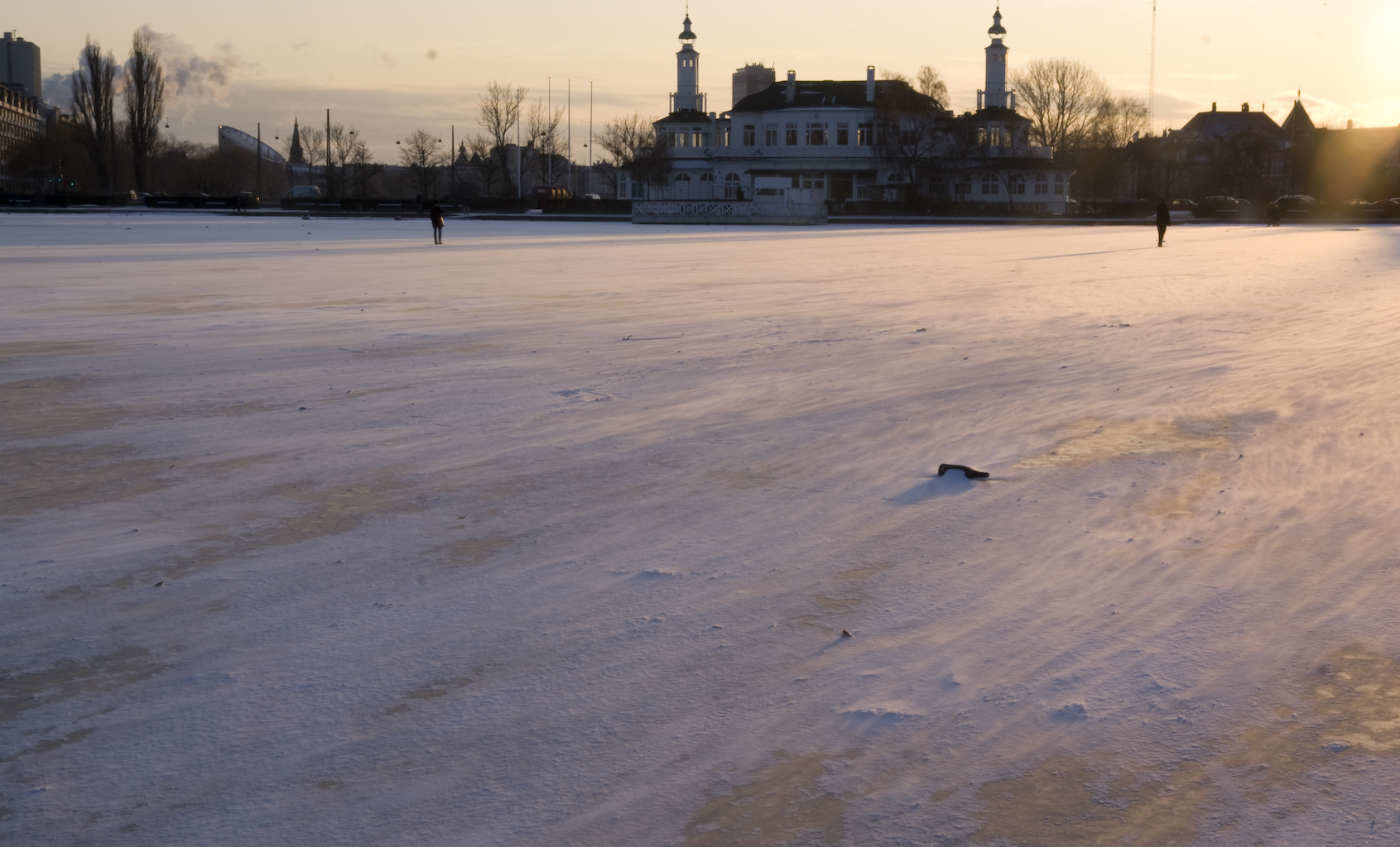 The other day I took a walk in the cold but fresh winter weather in Copenhagen with my two friends Mark H. Beanland and Anders Graae. We were chilling around with the idea of finding a nice little place to eat. On our way we passed the frozen lakes... It was a pretty great feeling to walk on solid ice! this shows how much colder it is this year compared to last year. Around last year I made this blog post, and the photos shows that the ice is much more safe to walk now, year 2010. I snapped this photo as we crossed the lake.