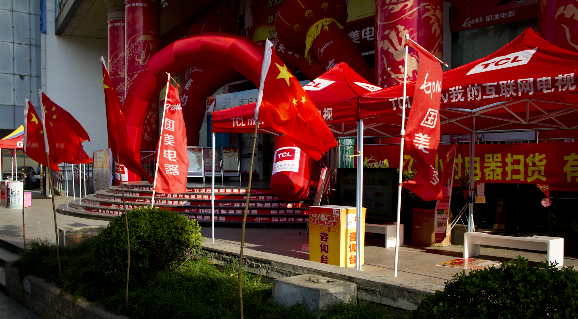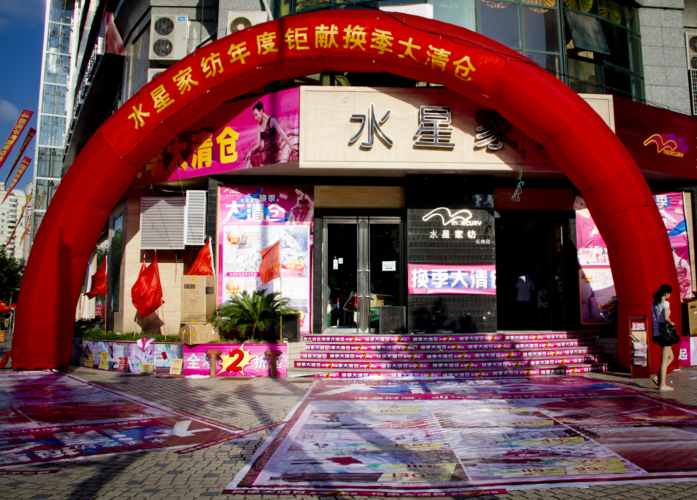 Yesterday when I was walking towards a subway station I came by two shops in the same building, both marketing towards their customers and trying to get us/them to enter the shop. It was like a sort of competition of who could make the most red fuss and be most visible and play the loudest music.. That is sort of the old-school way of direct marketing. My amazement also stems from the culture different, that this scenario would just never happen in Denmark... I got these photos as I walked by.