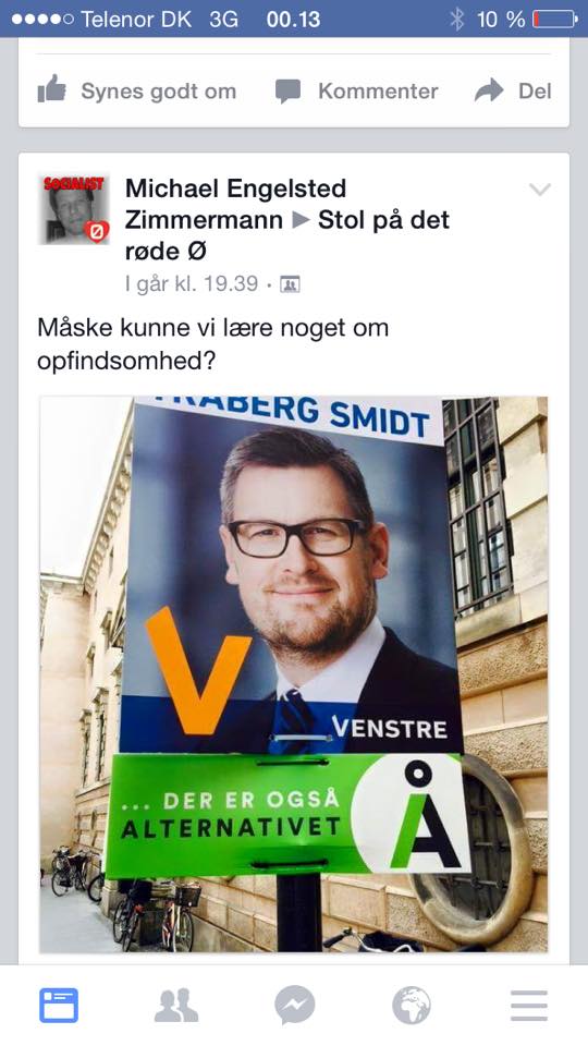 Man kan mene om politik hvad man vil, men dette stunt er kreativt. Det giver i min optik dermed mere opmærksomhed til partiet, mere end hvad andre partier opnår. På vedhæftede screenshot under tager alternativet hele billedet fra venstre ved blot at have en kreativ tilgang.